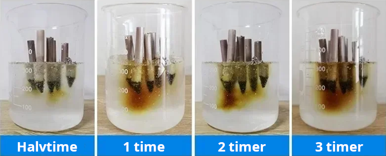 - Vent 1-2 minutter til sanden har absorbert vann til fast gel